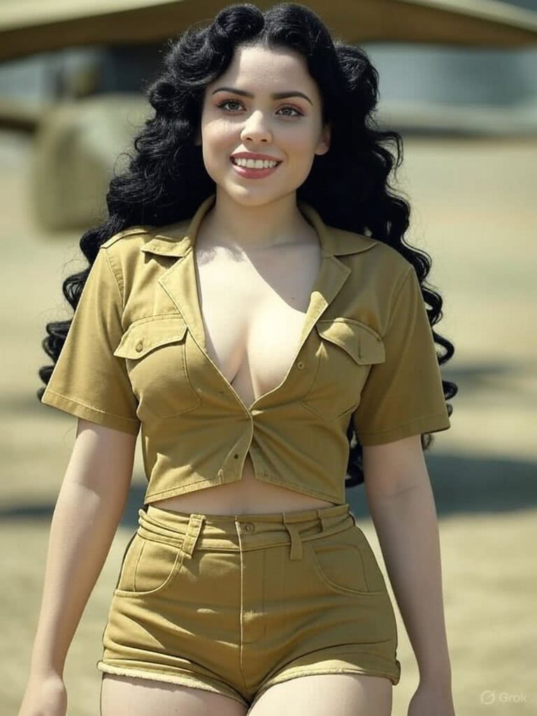 Seksowne sztuczne dziewczyny w strojach khaki wnoszą do flirtu i podrywania dawkę humoru, łącząc retro urok pin-up z lat 40. i 50. z lekkim, żartobliwym podejściem. Ich wizerunki, inspirowane analogowymi zdjęciami o żywych barwach, to nie tylko wizualna uczta, ale i komediowa lekcja podrywu – gdzie piersi stają się raczej żartobliwym atutem niż głównym tematem. Te cyfrowe kreacje, oparte na zdjęciach, bawią i rozbrajają, oferując humorystyczną podróż w świat zalotów.